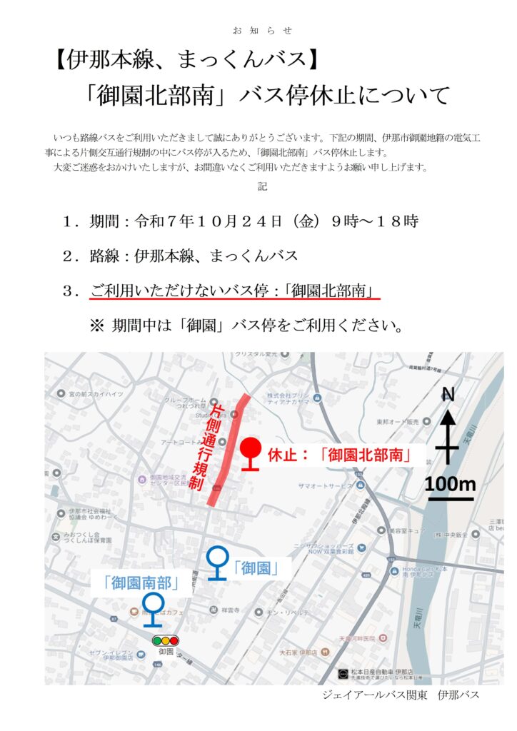 > (R7.10.24)【伊那本線・まっくんバス】「御園北部南」バス停休止について