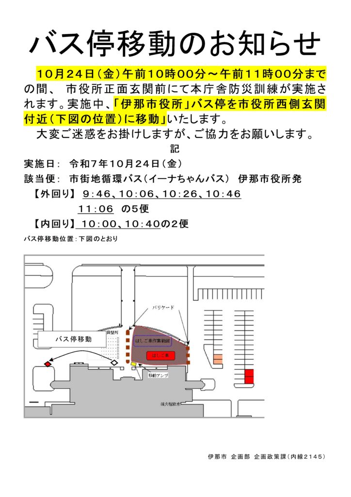 > (R7.10.24)【市街地循環バス】「伊那市役所」バス停の移動について