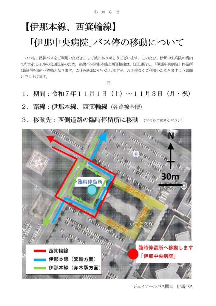 > (R7.11.1~3)【伊那本線、西箕輪線】「伊那中央病院」バス停移動について