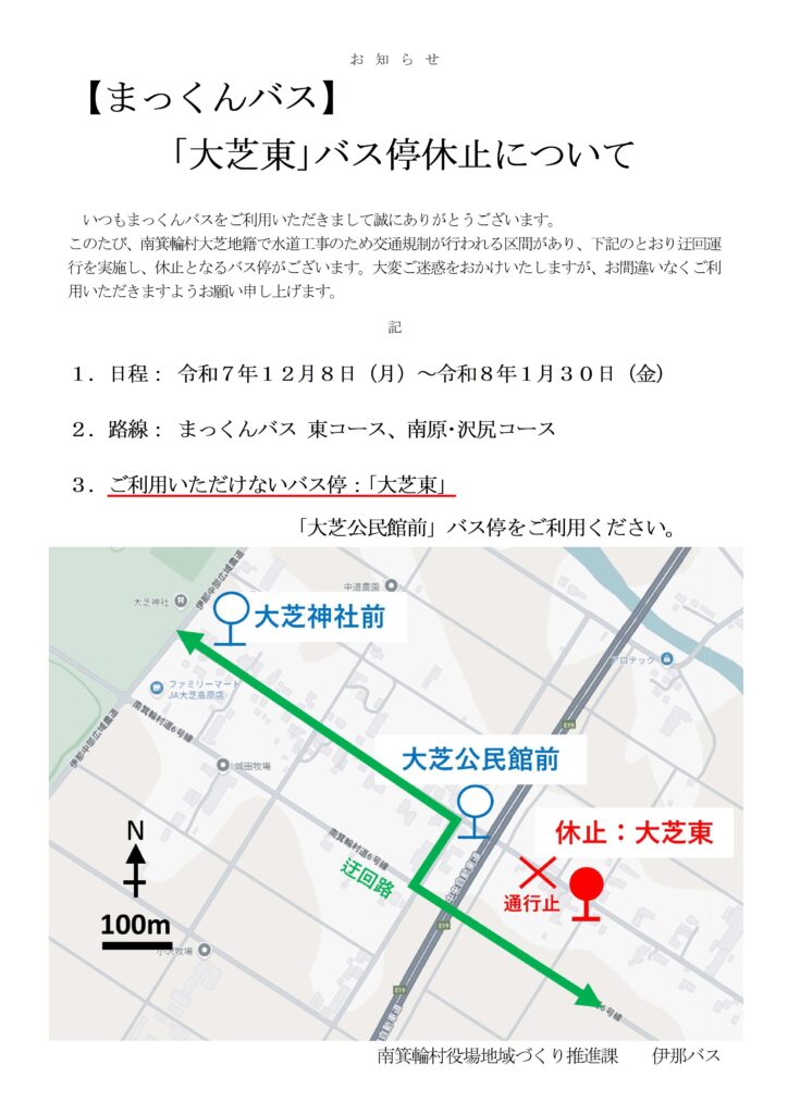 (R7.12.8~R8.1.30)【まっくんバス】「大芝東」バス停休止について
