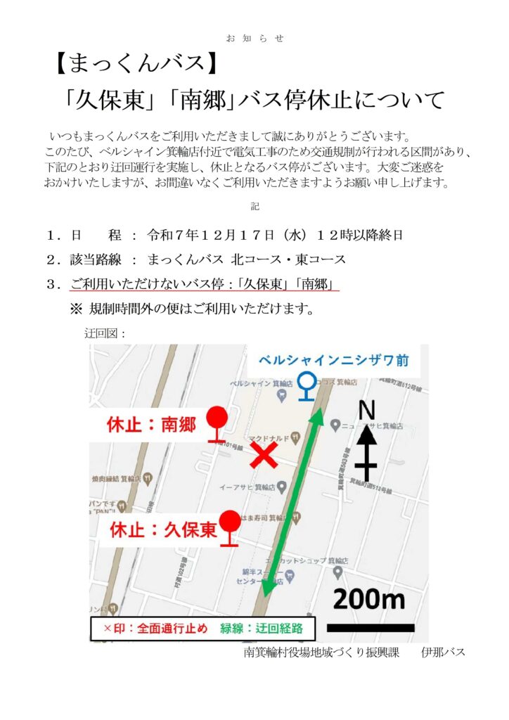 (R7.12.17)【まっくんバス】「久保東」「南郷」バス停休止について