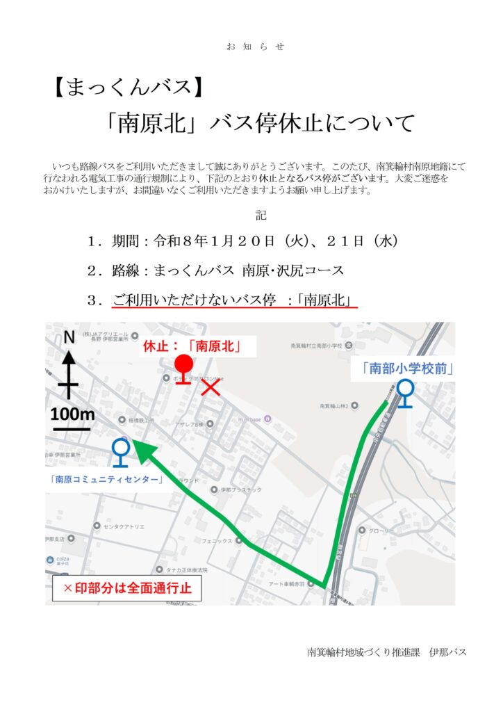 (R8.1.20~21)【まっくんバス】「南原北」バス停休止について