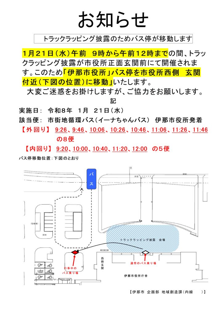 > (R8.1.21)【市街地循環バス】「伊那市役所」バス停の移動について