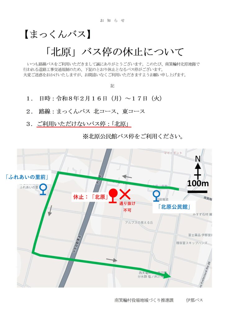 (R8.2.16~17)【まっくんバス】「北原」バス停休止について